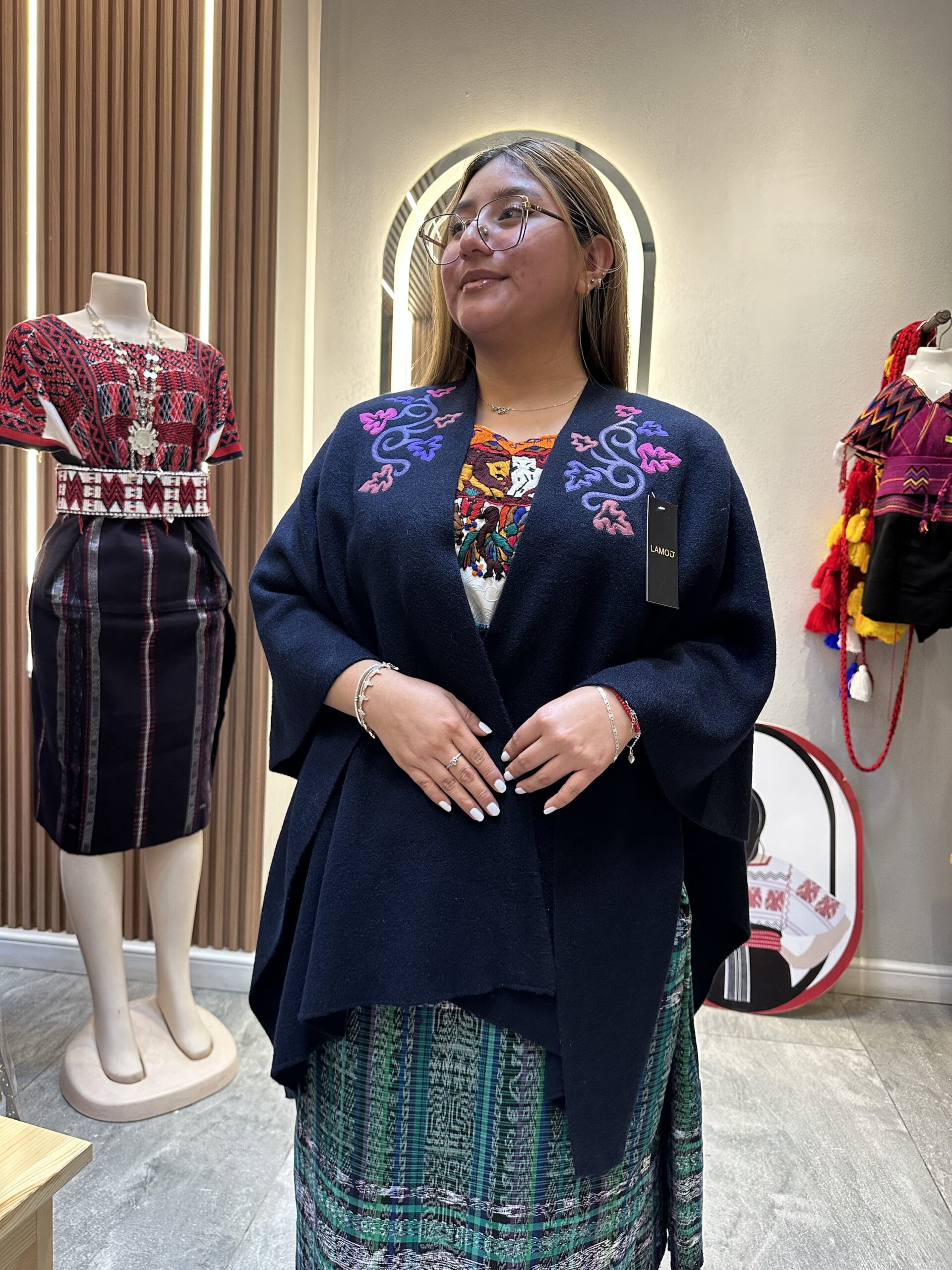 Abrigo, 100% ecuatoriano con acabados en cuero.