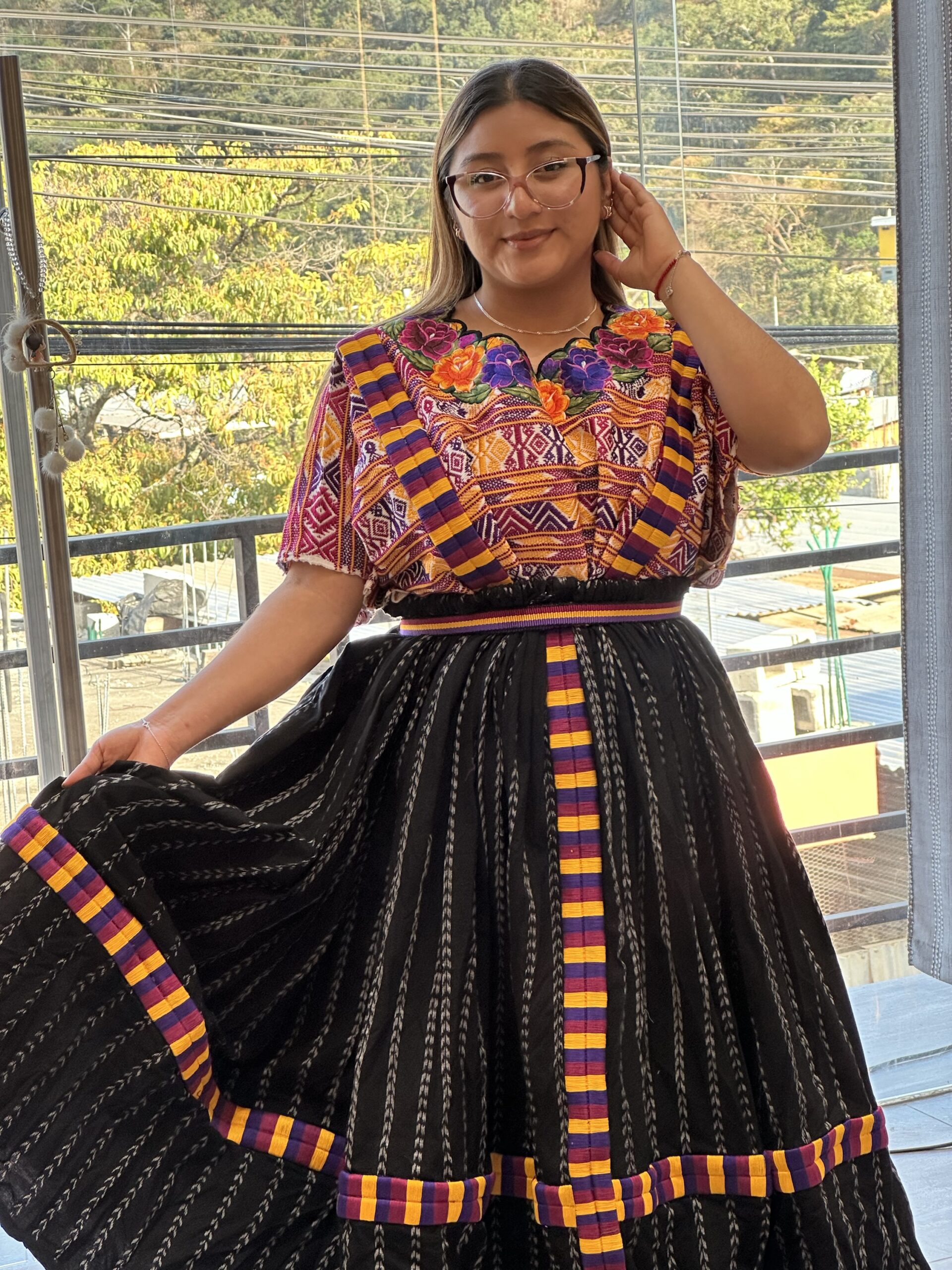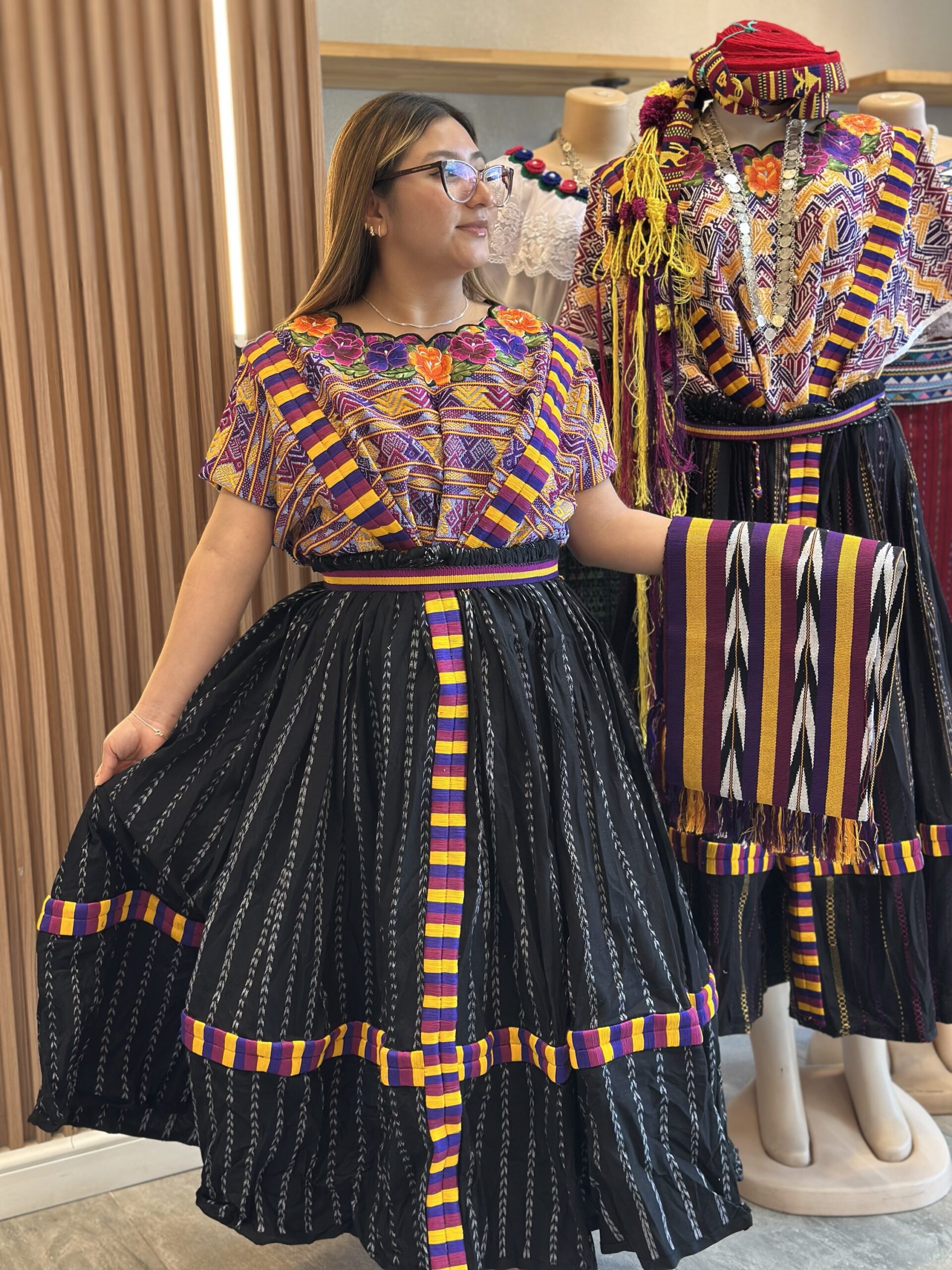 -Huipil tejido, acompañado de randa bordada a mano, donde cada puntada refleja horas de dedicación y saber ancestral.