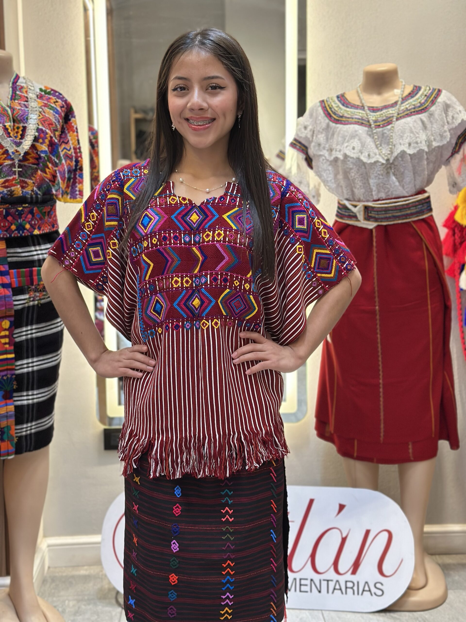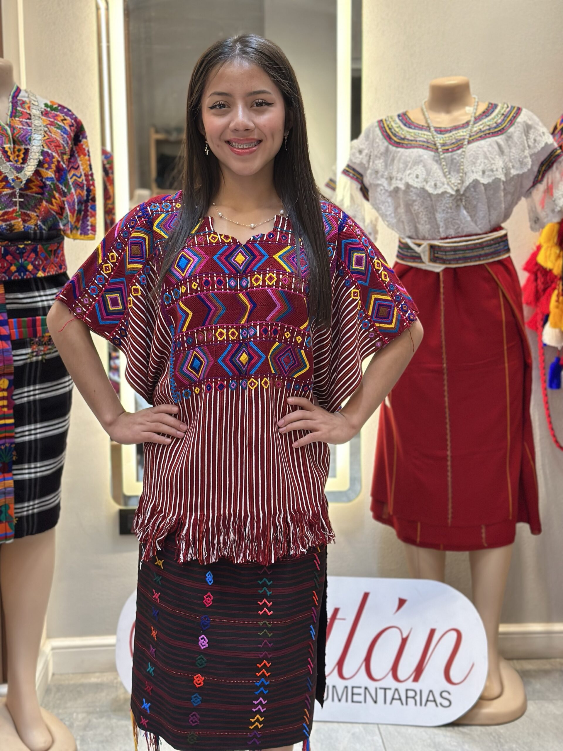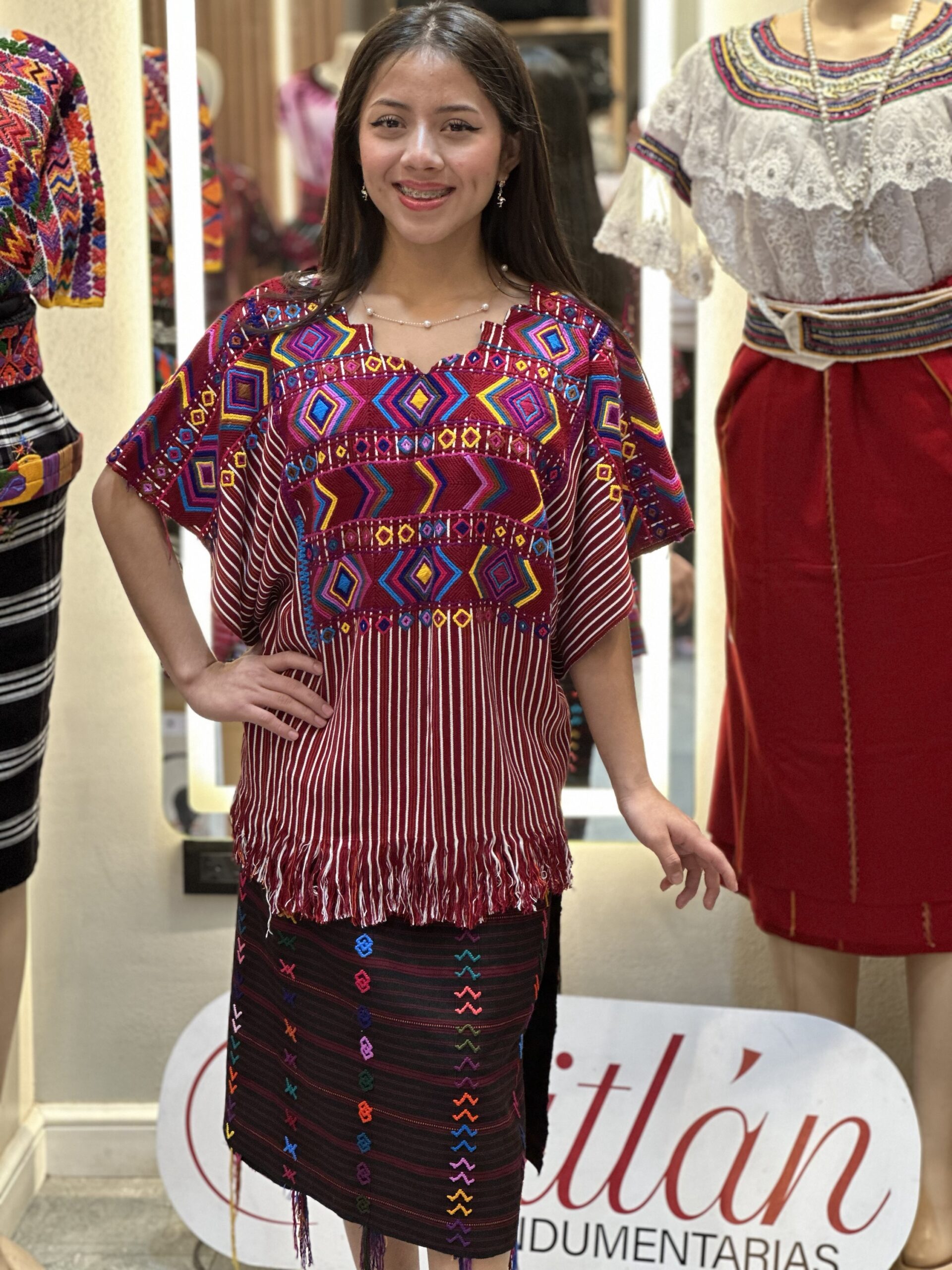 Corte tejido en telar de cintura, confeccionado en hilo alemán con un acabado elegante y auténtico.